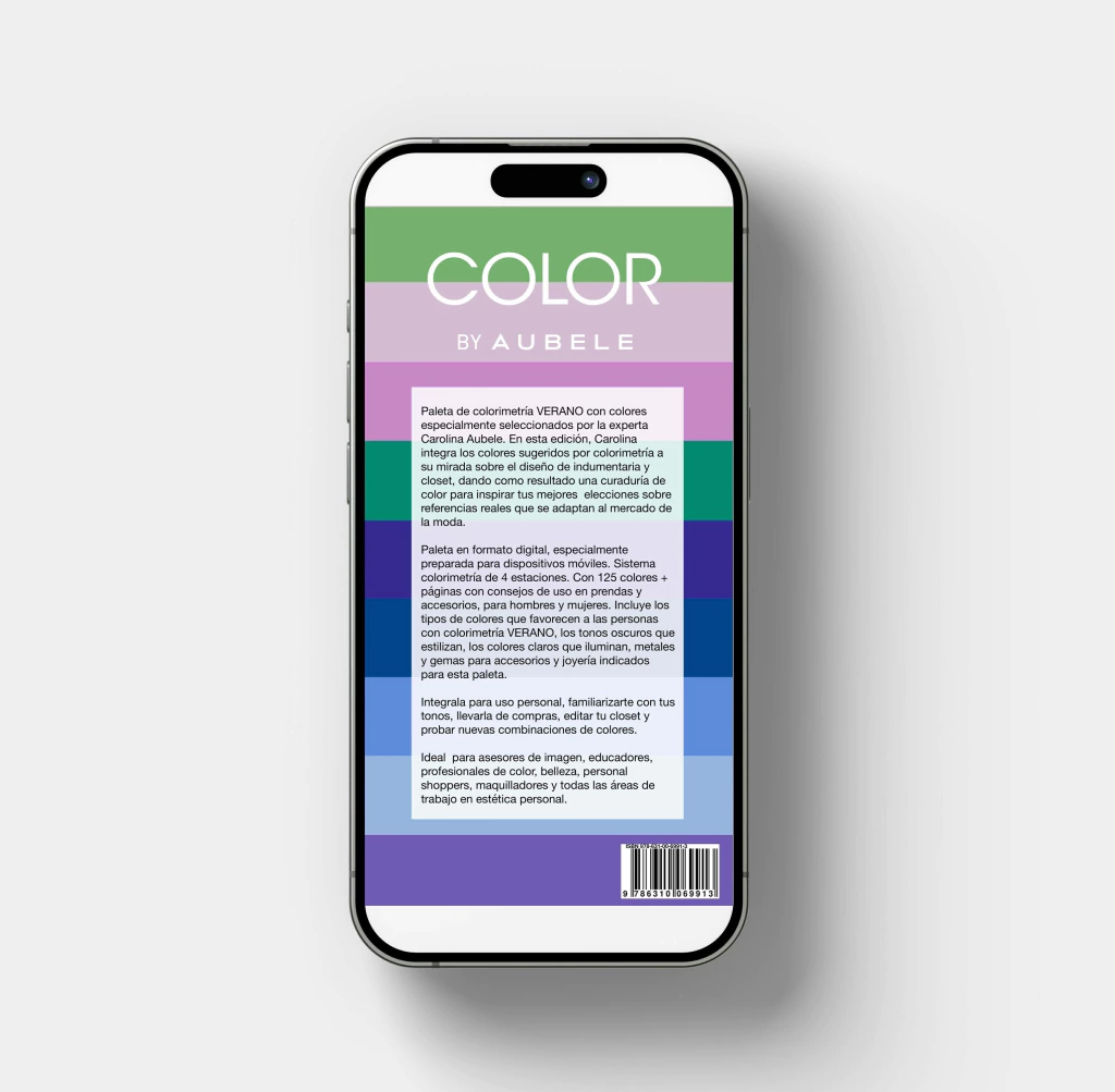 Paleta de colorimetría Verano, formato EBOOK en PDF digital, especialmente preparada para dispositivos móviles. Sistema colorimetría de 4 estaciones. Con 125 colores + páginas con consejos de uso en prendas y accesorios.